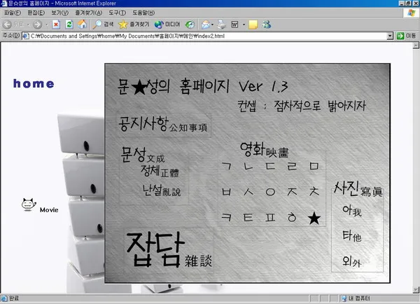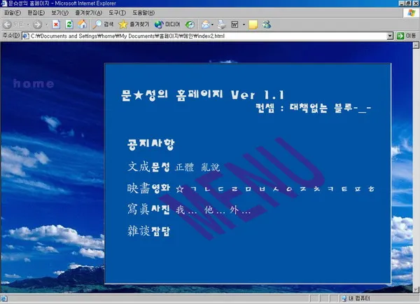 때는 2003년 2학기, 가벼운 교양수업으로 컴퓨터 관련 강좌를 수강하던 나는 학기 말까지 개인 홈페이지를 만들라는 과제를 받게 된다. 아직 싸이월드가 어마어마한 인기를 끌기 전이라 개인 홈페이지가 나름 유행했었기에 아주 뜬금없는 숙제는 아니었다.