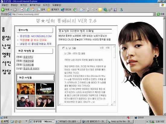 그래서 나도, 함께 수업을 들은 친구들도 모두 각자 마음에 드는 이름(도메인)과 주제로 홈페이지를 하나씩 만들게 됐다. 당시 난 별도로 쓰고 있던 영화감상문이 꽤 많아서 그걸 옮겨 넣는 것으로 컨텐츠를 채웠고, 닷컴이 인기인 시대이다 보니 문성닷컴을 도메인을 정했다.