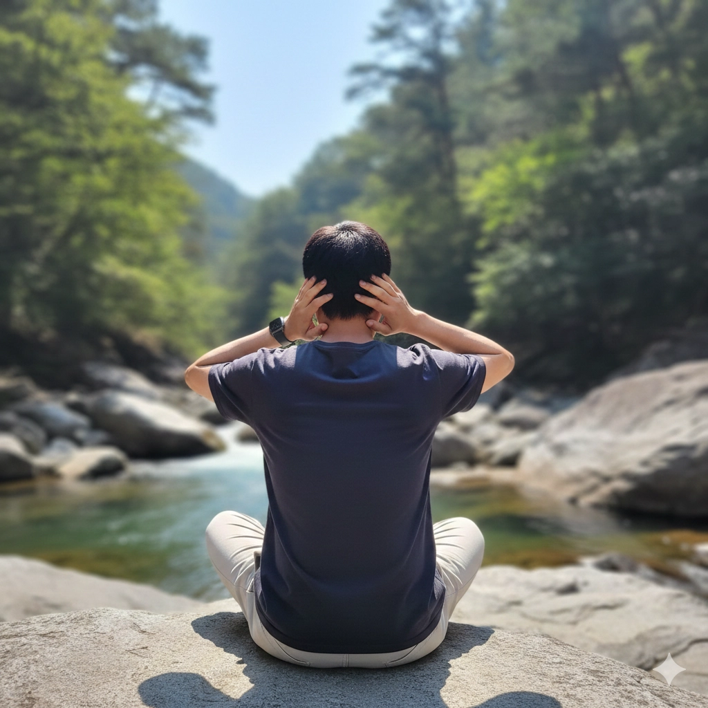 난 바위 위에 정좌하여 크게 숨을 들이쉰 후, 천천히 두 손을 들어 머리를 잡았다. 왼손은 앞이마를, 오른손은 뒤통수를 강하게 움켜쥐었다. 양 손이 제대로 자리를 잡은 것을 확인한 후 난, 머리를 왼쪽으로 돌리기 시작했다. 예상했던 대로 얼마 돌리지도 못하고 머리는 멈춰 섰다. 힘을 더 주었다. 목 쪽에 통증이 느껴졌다. 손에 힘줄이 빳빳하게 세워질 정도로 힘을 주었다. 한동안 강하게 저항하던 목이 끼익끼익 소리를 내며 돌아가기 시작했다. 목 뼈에서 부스러기들이 떨어져나가는 것 같았다.
